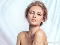 Descriptive keywords: beauty, woman, face, skin, natural, clean, young, light, portrait, faces, women, female, light brown, hair, hairstyle, contemporary, modern, makeup, soft, smooth, beauty treatment, studio shot, caucasian, make up, make-up, beauty care, short hair, hairdo, hair-do, skin care, isolated, studio, head and shoulders, headshot, front view, real, fabric, flowy, artistic, expression, hair style, hair-style, glamorous, attractive, pretty, looking at camera, eye contact, blond, blonde, pulled back, swept, bare shoulders, white, white background, curtain, blue background, one person, blue, people, twentysomething, brunette, twenties, young adult, twenty, 20s, 20-30, copyspace, copy space, cutout, cut out, cut-out