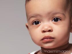 Descriptive keywords: baby, child, girl, toddler, portrait, infant, black, face, cute, little, young, kid, kids, children, babies, studio shot, isolated, gray background, mixed race person, small, african american, african ethnicity, afro, african, thoughtful, sad, upset, one year old, 1, one, one year, nine months, 9, head and shoulders, only, one person, people, girls, female, single, closeup, close up, close-up, headshot, front view, emotion, emotions, emotional, expressive, adorable, copyspace, copy space, cut out, cutout, cut-out