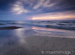 Royalty-Free photo of Lake Huron sandy shore beautiful sunset nature scenery. Pinery Provincial Park, Ontario, Canada. Photo by Alex Maxim. This image is available for licensing for a variety of editorial and commercial uses in publications, designs, print and online.