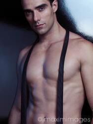 Rights-Managed photo of Sexy portrait of a young handsome man with muscular bare torso and a black necktie Photo by Alex Maxim. This image is available for licensing for a variety of editorial and commercial uses in publications, designs, print and online.
