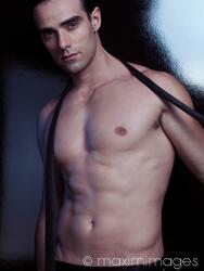 Rights-Managed photo of Sexy portrait of a young handsome man with muscular bare torso and a black tie over his neck Photo by Alex Maxim. This image is available for licensing for a variety of editorial and commercial uses in publications, designs, print and online.