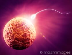 Royalty-Free illustration of Fertilization concept. Sperm reaching human egg, artistic 3D illustration. Illustration by Alex Maxim. This image is available for licensing for a variety of editorial and commercial uses in publications, designs, print and online.