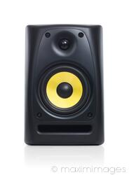 Descriptive keywords: speaker, audio, sound, speakers, system, music, musical, equipment, technology, electronics, monitor, black, yellow, large, front, front view, nobody, object, single, one, single object, studio, studio shot, isolated, white, white background, cutout, cut out, cut-out, closeup, close up