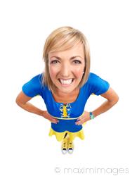 Descriptive keywords: funny, woman, face, smiling, smile, humorous, fun, smiles, young, looking, up, above, teeth, blond, blonde, isolated, white, white background, cutout, cut out, cut-out, high angle view, wide angle, girl, female, cute, adult, colorful, colors, yellow, blue, caucasian, thirties, twenties, thirtysomething, twentysomething, 20-30, 20s, 30s, studio shot, looking at camera, eye contact