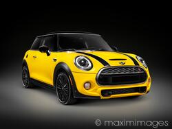 Rights-Managed photo of Yellow 2014 Mini Cooper S, Mini Hatch, hatchback compact city car isolated on black background with clipping path Photo by Alex Maxim. This image is available for licensing for a variety of editorial and commercial uses in publications, designs, print and online.