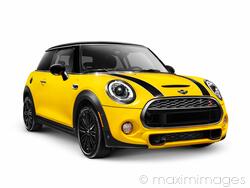 Rights-Managed photo of Yellow 2014 Mini Cooper S, Mini Hatch, hatchback compact city car isolated on white background with clipping path Photo by Alex Maxim. This image is available for licensing for a variety of editorial and commercial uses in publications, designs, print and online.