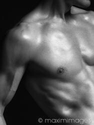 Descriptive keywords: man, nude, naked, body, arm, body parts, body part, fit, men, bare, muscular, lean, slim, sexy, male, skin, shiny, wet, oiled, muscles, shape, front, torso, dark, black and white, grayscale, monochrome, one person, chest, black, black background, one, single, undressed, artistic, standing, dramatic, front view, studio shot, caucasian, young, mature, adult, implied, implied nudity