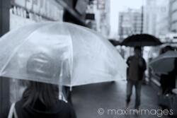 Descriptive keywords: rain, people, street, umbrellas, umbrella, japan, tokyo, raining, rainy, weather, akihabara, japanese, outdoor, outdoors, outside, sidewalk, day, black and white, monochrome, blurred, out of focus, abstract, woman, back