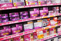 Blue ray disks on shelves of a large electronics store Yodobashi Camera, Yodobashi-Akiba in Akihabara, Tokyo, Japan. You can buy a license or prints of this high-resolution, high-quality photo suitable for large-size publications, large-format prints and posters.