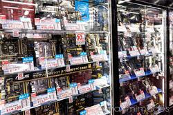 Computer motherboards on display in electronics store Yodobashi Camera, Yodobashi-Akiba in Akihabara, Tokyo, Japan. MaximImages.com