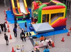 Descriptive keywords: playground, inflatable, rides, above, aerial, children, tokyo, japan, japanese, people, outdoor, outdoors, outside