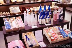 Royalty-Free photo of Japanese sake bottles and gift packaging in a store in Tokyo, Japan. Photo by Oleksiy Maksymenko. This image is available for licensing for a variety of editorial and commercial uses in publications, designs, print and online.