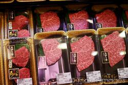 Royalty-Free photo of Japanese beef steak Wagyu packaged on display in a supermarket. Tokyo, Japan. Photo by Oleksiy Maksymenko. This image is available for licensing for a variety of editorial and commercial uses in publications, designs, print and online.