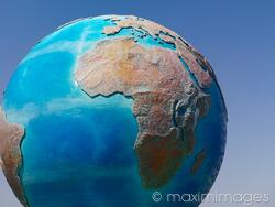 Descriptive keywords: earth, globe, planet, sculpture, blue, africa, world, map, sphere, sculptures, nobody