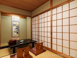 Descriptive keywords: ryokan, room, tea table, table, chabudai, zaisu, chairs, chair, japan, japanese, interior, traditional, ryokans, shoji, hotel, inn, kyoto, asia, asian, oriental, indoor, indoors, inside, decor, furniture, nobody, tatami, mats, travel, tourism, interiors, screen