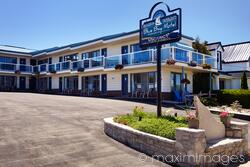 Royalty-Free photo of Blue Bay Motel in Tobermory, Ontario, Canada Photo by Alex Maxim. This image is available for licensing for a variety of editorial and commercial uses in publications, designs, print and online.