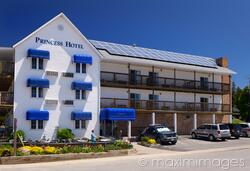 Descriptive keywords: tobermory, hotel, hotels, princess, city, town, ontario, canada, travel, outdoor, outdoors, exterior, outside, nobody, day, summer, summertime, solar, panels, roof, panel, building