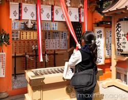 This Royalty-Free stock photo 'Woman at Jishu Jinja matchmaking shrine of Kiyomizu-dera in Kyoto' is created by Alex Maxim and can be licensed for your advertising, corporate, editorial or other use. Click 'License this Image' to estimate the license fee and add the image to cart. Licensed files are delivered electronically as soon as the payment is processed.