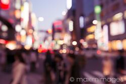 Royalty-Free photo of Abstract out-of-focus city scenery with colorful lights at dusk. Tokyo, Japan. Photo by Alex Maxim. This image is available for licensing for a variety of editorial and commercial uses in publications, designs, print and online.