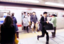Royalty-Free photo of People getting off a subway train in Tokyo, Japan. Abstract out-of-focus photo. Photo by Oleksiy Maksymenko. This image is available for licensing for a variety of editorial and commercial uses in publications, designs, print and online.