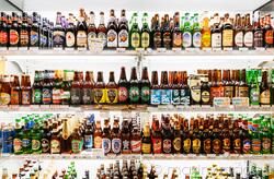 Royalty-Free photo of Imported beers on shelves in a Japanese beer store. Tokyo, Japan. Photo by Oleksiy Maksymenko. This image is available for licensing for a variety of editorial and commercial uses in publications, designs, print and online.