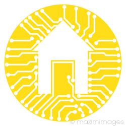 connected, home, house, technology, logo, emblem, symbol, electric, digital, household, domestic, appliances, concept, conceptual, board, pcb, wired, logos, emblems, symbols, sign, signs, houses, future, electronics, wires, wiring, wire, circuit, design, concepts, illustration, illustrations, diagram, scheme, graph, residential, security, system, automation, automated, network, cable, cabling, internet, smart, isolated, yellow, circle, round, sun, solar, energy, white, white background, property, secure, computer, computers, connecting, connection, connections, nobody, shape, shaped, advanced, cutout, cut out, cut-out