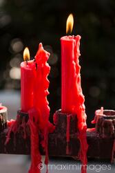 Royalty-Free (micro) photo of Burning red candles at Giant Wild Goose Pagoda Buddhist temple in Xi'an, China Photo by Alex Maxim. This image is available for licensing for a variety of editorial and commercial uses in publications, designs, print and online.