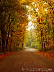 Descriptive keywords: road, country, nature, autumn, fall, countryside, scene, scenic, scenery, winding road, trees, season, country road, way, through, forest, woods, ontario, canada, algonquin, provincial park, travel, trip, foggy, mist, misty, scenes, beautiful, outdoor, outdoors, outside, park, unpaved, yellow, green, fallen, leaves, leafage, foliage, nobody, background, north america, muskoka, copyspace, copy space