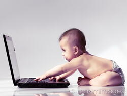 Descriptive keywords: baby, computer, laptop, cute, playing, infant, child, sitting, using, in front, boy, kid, children, babies, infants, kids, technology, little, small, young, male, isolated, clever, smart, computers, curious, funny, adorable, notebook, working, childhood, business, electronics, concept, conceptual, gray background, gray, learning, education, development, humorous, comical, developing, curiosity, educational, bare, learn, lifestyle, monitor, display, busy, concepts, side view, six months old, 6 month, one person, people, one, floor, full length, full body, indoor, indoors, studio shot, looking, copyspace, copy space, cutout, cut out, cut-out