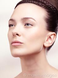 This Rights-Managed stock photo 'Beauty portrait of woman with clean natural look and updo hairstyle' is created by Alex Maxim and can be licensed for your advertising, corporate, editorial or other use. Click 'License this Image' to estimate the license fee and add the image to cart. Licensed files are delivered electronically as soon as the payment is processed.