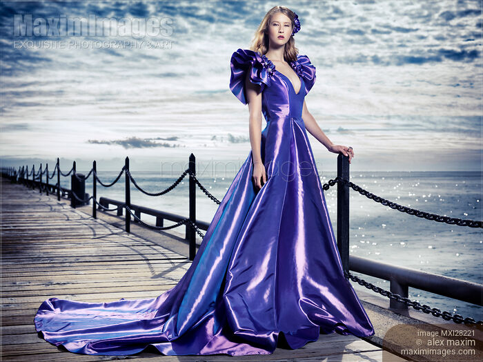 This Rights-Managed stock photo 'Young woman in beautiful long evening gown at waterfront' is created by Alex Maxim and can be licensed for your advertising, corporate, editorial or other use. Click 'License this Image' to estimate the license fee and add the image to cart. Licensed files are delivered electronically as soon as the payment is processed.