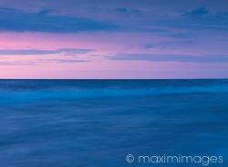 Royalty-Free photo of Beautiful light blue and pink sunset scenery of lake Huron in soft pastel colors, Pinery Provincial Park, Grand Bend, Ontario, Canada. Photo by Alex Maxim. This image is available for licensing for a variety of editorial and commercial uses in publications, designs, print and online.