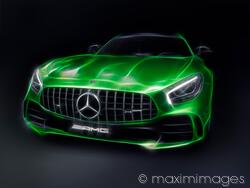 Artistically stylized photo-illustration of Green 2017 Mercedes-Benz AMG GT R Coupe sports car isolated on black background. You can buy a license or prints of this high-resolution, high-quality illustration suitable for large-size publications, large-format prints and posters.