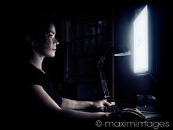 woman, computer, monitor, dark, screen, sitting, working, night, light, illuminated, person, women, display, desk, home, darkness, face, people, female, nighttime, using, internet, lit, caucasian, alone, computers, pc, girl, looking, telecommunication, glow, glowing, profile, side view, afterhours, black background, in front, staring, one person