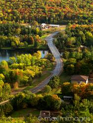 Descriptive keywords: autumn, fall, nature, road, trees, winding road, bridge, lake, crossing, sunset, aerial, town, country, countryside, highway, through, dorset, yellow, red, green, high angle view, ontario, park, muskoka, colorful, leafage, foliage, colourful, colors, colours, changing, season, nobody, village, above, scenery, scenic, scene, view, views, travel, canada, landscape, landscapes, canadian, north, northern, beautiful, beauty, seasons, october, north america, carpet, outdoor, outdoors