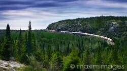 Descriptive keywords: canadian pacific railway, cp rail, railway, train, canada, canadian, ontario, cp, traing, freight, cargo, moving, going, landscape, green, forest, trees, lake, superior, mountain, mountains, rocks, hills, cliff, around, winding, railroad, rails, nature, panorama, panoramic, scenic, scenery, nobody, view, lookout, transport, transportation, north america, north american, distance, distant, travel, bending, bend, aerial, high angle view, above