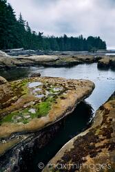 Rights-Managed photo of Beautiful landscape with marine flora and tide pools at Botanical Beach Juan de Fuca Provincial Park shoreline scenery, Port Renfrew, Vancouver island, British Columbia, Canada 2017 Photo by Alex Maxim. This image is available for licensing for a variety of editorial and commercial uses in publications, designs, print and online.