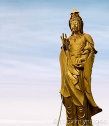 Descriptive keywords: guanyin, buddha, kannon, kan'non, goddess, compassion, statue, bronze, sculpture, statues, cradles, holding, cradling, baby, hand, female, woman, mother, guan yin, kuan yin, bodhisattva, avalokiteswara, kyoto, japan, isolated, sky, buddhas, buddhism, religious, religion, gold, golden