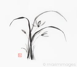 Descriptive keywords: orchids, orchid, flowers, flower, wild, zen, sumi-e, sumi, painting, art, artwork, leaves, fine art, chinese, japanese, asian, oriental, ink, drawing, paintings, arts, black and white, isolated, white background, white, sumi e, sumie, black, monochrome, tranquil, simple, minimalistic, simplistic, logo, plant, plants, nature, nobody, illustration, illustrations, print, design, subtle, abstract, artistic, vintage, copyspace, copy space, cutout, cut out, cut-out, veronika maxim, sumie-seal