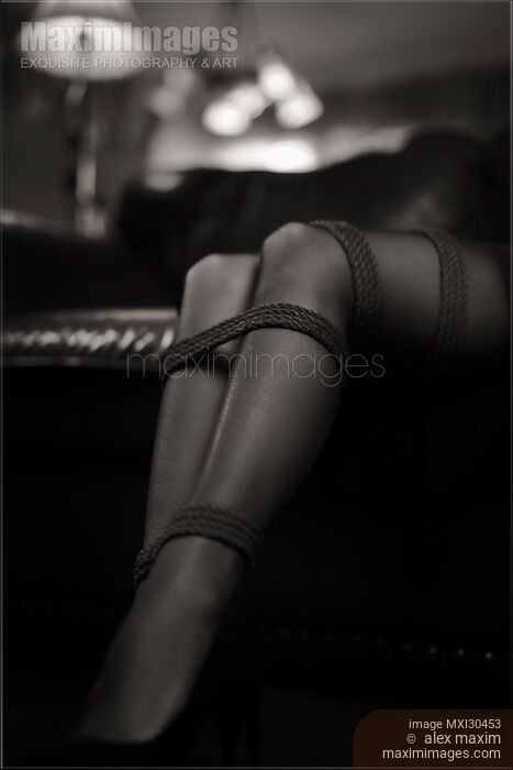 This Royalty-Free stock photo 'Sexy woman sitting on a sofa wearing high heels and stocking, with her legs tied in shibari bondage ropes Artistic black and white' is created by Alex Maxim and can be licensed for your advertising, corporate, editorial or other use. Click 'License this Image' to estimate the license fee and add the image to cart. Licensed files are delivered electronically as soon as the payment is processed.
