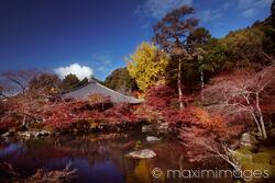 This Rights-Managed stock photo 'Daikodo hall with a pond at Daigo-ji temple in colorful autumn scenery Kyoto Japan' is created by Alex Maxim and can be licensed for your advertising, corporate, editorial or other use. Click 'License this Image' to estimate the license fee and add the image to cart. Licensed files are delivered electronically as soon as the payment is processed.