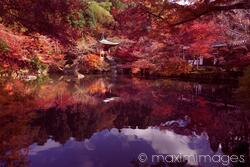 Bentendo Hall pond, surreal colorful autumn scenery at Daigo-ji temple. Shimo-Daigo part of Daigoji complex in fall colors. MaximImages.com