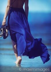 This Rights-Managed stock photo 'Woman in blue summer dress blowing in the wind walking barefoot on ocean beach sand' is created by Alex Maxim and can be licensed for your advertising, corporate, editorial or other use. Click 'License this Image' to estimate the license fee and add the image to cart. Licensed files are delivered electronically as soon as the payment is processed.