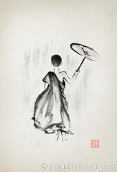This Royalty-Free stock illustration 'Young monk walking with an umbrella under rain Japanese Zen Sumi-e painting' is created by Veronika Maxim and can be licensed for your advertising, corporate, editorial or other use. Click 'License this Image' to estimate the license fee and add the image to cart. Licensed files are delivered electronically as soon as the payment is processed.