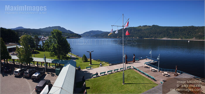 Rights-Managed photo of Port Alberni city centre Harbour Quay panoramic view of Alberni Inlet, Alberni Valley, Vancouver Island, British Columbia, Canada 2018 Photo by Alex Maxim. This image is available for licensing for a variety of editorial and commercial uses in publications, designs, print and online.