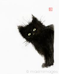 Descriptive keywords: cat, cats, kitten, black, fuzzy, puffy, painting, illustration, zen, design, art, japanese, furry, funny, humorous, humour, humor, wild, messy, kittens, sneaking, cute, designs, sumi-e, sumi, sumie, artwork, artistic, fine art, beautiful, scary, eerie, freaky, frightening, monstrous, weird, peeking, bizarre, rice paper, chinese, halloween, ink, drawing, paintings, simple, minimalistic, simplistic, white, isolated, white background, childish, children, sumi e, nobody, illustrations, cutout, cut out, cut-out, sumie-seal