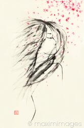 Descriptive keywords: woman, young, girl, asian, girls, women, sakura, flowers, blossoms, bloom, blossom, wind, hair, painting, illustration, zen, design, art, japanese, oriental, immersed, sensual, flying, falling, petals, red, pink, designs, sumi-e, sumi, sumie, artwork, elegant, intricate, blooming, blowing, magical, serene, subtle, artistic, spiritual, fine art, beautiful, tranquil, rice paper, chinese, ink, drawing, paintings, simple, minimalistic, simplistic, off-white, isolated, beige, ivory, white background, nobody, illustrations, sumie-seal