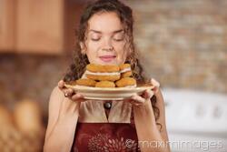 baking, cookies, baked, fresh, woman, holding, plate, cakes, home-made, making, smell, smelling, aroma, face, kitchen, home, freshly, made, food, cooking, enjoying, happy, smile, smiling, closeup, close up, close-up, women, person, apron, wearing, preparing, meal, pastries, foods, goods, homemade, young, dessert, desserts, cute, pretty, caucasian, homey, indoor, indoors, inside, adult, female, girl, people, thirtysomething, thirties, 30s