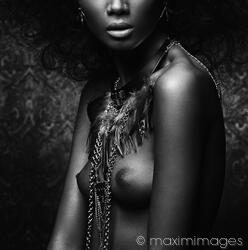 Descriptive keywords: nude, tribal, breast, naked, beauty, exotic, woman, native, aboriginal, sexy, necklace, breasts, chest, bare, dramatic, expressive, power, women, feather, body, beautiful, feathers, accessories, wild, american, asian, oriental, indian, girl, topless, young, art nude, art nudes, artistic, half nude, half naked, half-nude, shiny, skin, jewelry, jewellery, jewelery, shaman, shamanic, aztec, fashion, dark-skinned, black, black and white, monochrome, metallic, contrast, golden, feathery, creative, ethnic, ethnicity, ethnics, unusual, edgy, waist up, expression, indoor, indoors, people, twentysomething, twenties, twenty, 20s, 20, portrait, 20-30