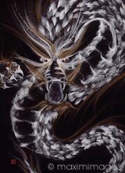 This Royalty-Free stock illustration 'Closeup of a fierce dragon face sumi-e ink painting on black' is created by Veronika Maxim and can be licensed for your advertising, corporate, editorial or other use. Click 'License this Image' to estimate the license fee and add the image to cart. Licensed files are delivered electronically as soon as the payment is processed.